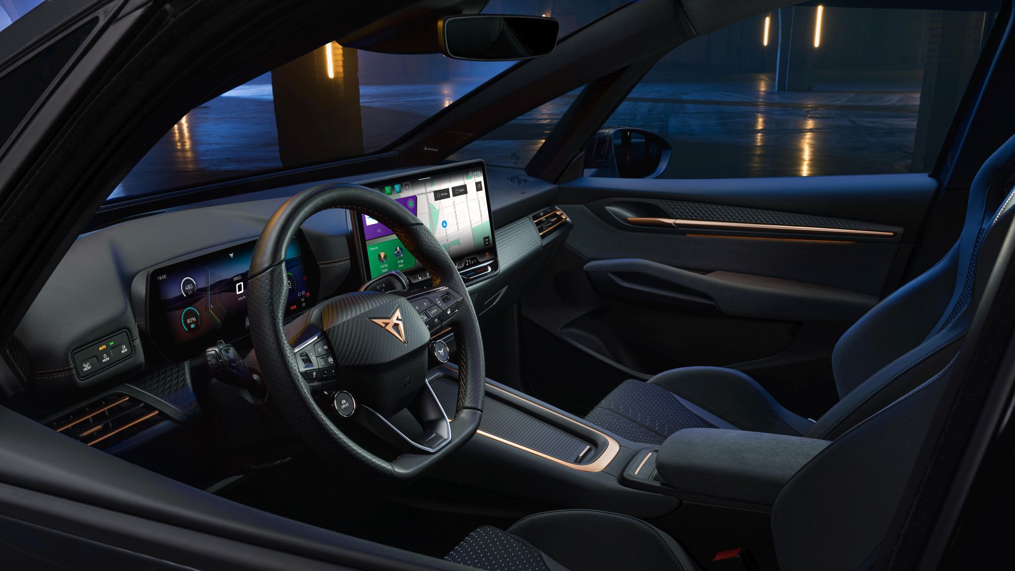 CUPRA Born vstupuje do nové éry podmanivé digitalizace na základě nového operačního systému Android, který přetváří uživatelské zážitky a nabízí hladký přístup k široké škále aplikací v řidičském prostředí prostřednictvím integrovaného obchodu s aplikacemi a důvěrně známé funkčnosti chytrých telefonů. Řidič má vše na očích a po ruce na centrálním 12,9“ dotykovém displeji rámovaném osvětlenou posuvnou lištou, jež dodává hloubku a dynamiku.